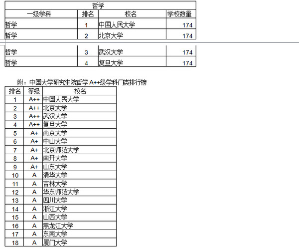 2015中国大学研究生院哲学A++级一级学科排行榜