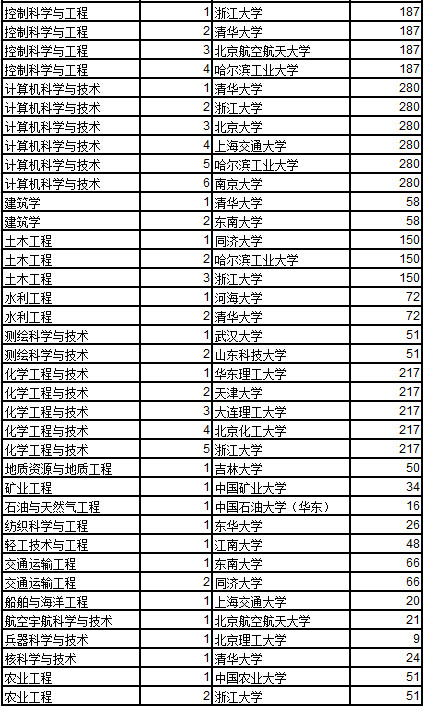 武书连2015中国大学研究生院工学A++级一级学科排行榜