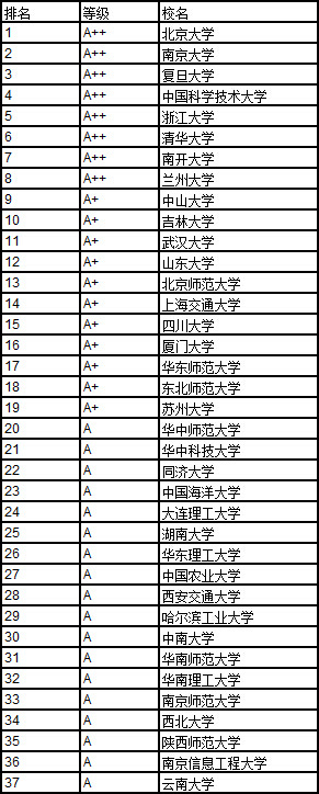 武书连2015中国大学研究生院教育学A++级一级学科排行榜