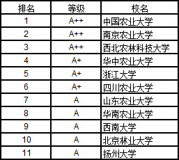 武书连2015中国大学研究生院农学A++级一级学科排行榜