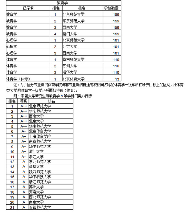 2015中国大学研究生院教育学A++级一级学科排行榜