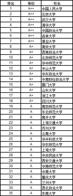 7.武书连2015中国大学研究生院法学A++级一级学科排行榜