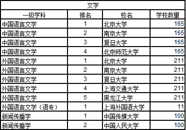 武书连2015中国大学研究生院文学A++级一级学科排行榜
