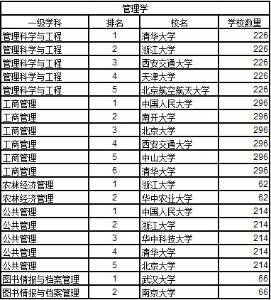 2015中国大学研究生院管理学A++级一级学科排行榜