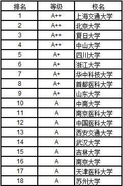 4.武书连2015中国大学研究生院医学A++级一级学科排行榜