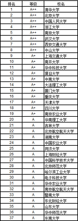 A等:前10%为A等;其中学术水平最高的前2%是A++级,介于2%~5%(含,以下同)之间的是A+级,5%~10%为A级。