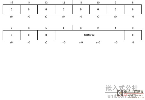 SD16IVx 位15-0 Sigma-Delta ADC具有一个中断向量,中断向量寄存器SD16IV辅助处理