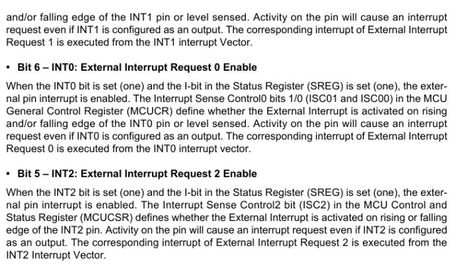 observe that ,if enabled the interrupts will trigger even if the INT0..2pins are configured as outputs.可得即使中断引脚配置成输出,只要使能了中断,电平发生了变化就会触发。