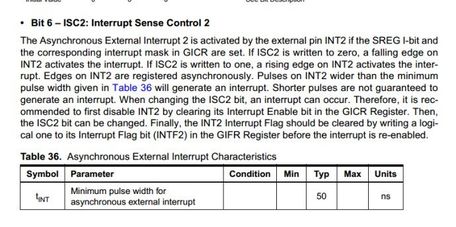 激活中断, IF ISC2 是写 1,是一个 rising edge (上升沿) 开INT2 激活中断, INT2的边沿触发方式(registered 注册)是异步的。跟外部中断2有关系的