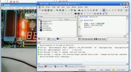集成环境:AVR Studio,可以内联WinAVR 成为一个具有编译、仿真、下载功能的集成环境