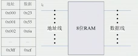 主要有2组总线一边是地址线一边是数据线(其实还有个控制总线没画出),对这个RAM读写给地址线送一个相应地址通过控制总线表示当前是读模式,相应的数据线就将对应的地址存的内容送到数据线上。对于ROM也是这样的。