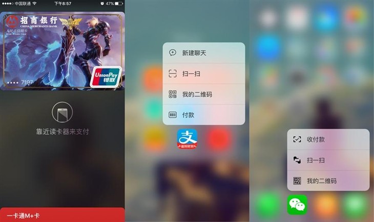不得不说在更换为iPhone 6s以后,花钱变得方便了不少,我们在日常购物时只要双击Home键呼出Apple Pay再用指纹解锁后变可轻松付款,在不支持闪付的地方也能通过3D Touch用力按压支付宝/微信图标快速完成付款。