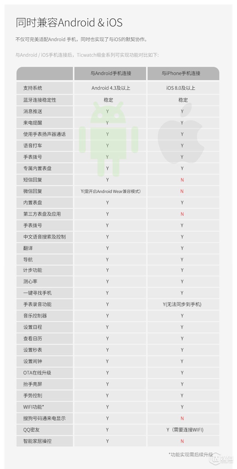 从官方提供的数据来看,在兼容Android 和 IOS两个操作系统方面,除了短信回复和微信回复少量功能暂时无法实现,其他体验并不太大差别: