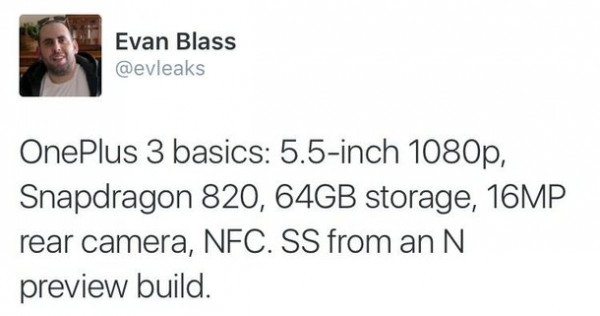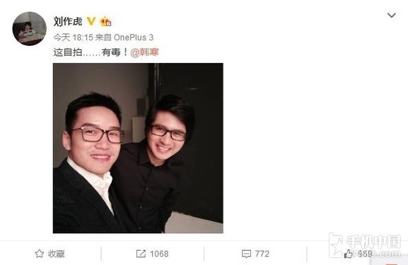 昨天一加手机创始人@刘作虎在微博上带上了一加手机3作为小尾巴,发布了一张与韩寒合拍的自拍照。而后,国外爆料大神@evleaks 给我们带来了一加手机3的整体配置信息。