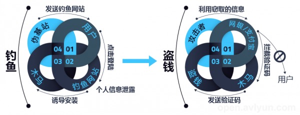 目 前比较常见的一种短信拦截木马行为是:通过伪基站发送伪造钓鱼网站地址,用户访问钓鱼网站后,欺骗用户输入个人信息并诱导用户下载安装短信拦截木马,最后 用户在线转账时通过拦截木马将网银验证码拦截转发到攻击者手机上,实现资金窃取。图14展示了短信拦截木马的攻击模式。