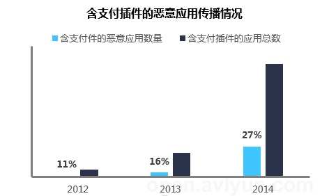 2014年,恶意代码紧盯手机用户的网银支付账号密码,手机支付类病毒越来越多。网银信息泄露会给用户造成无法估量的经济损失。