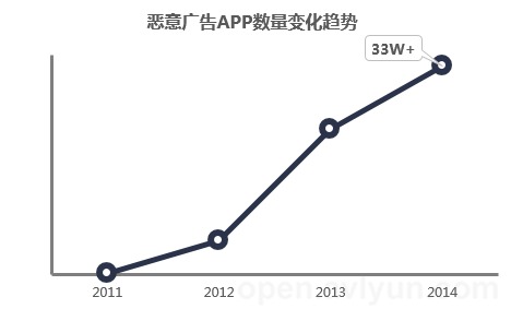 2014年,大量广告应用被植入恶意代码,主要用于窃取用户重要隐私信息、推送其他恶意应用等,严重侵犯用户利益。