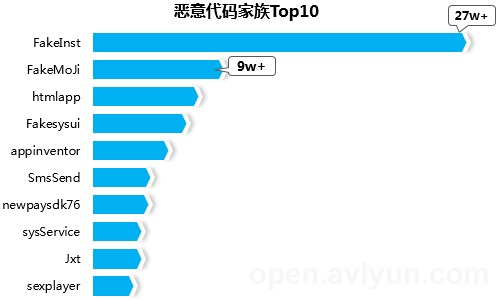 三、 Android恶意代码详情分析1 恶意代码家族Top10
