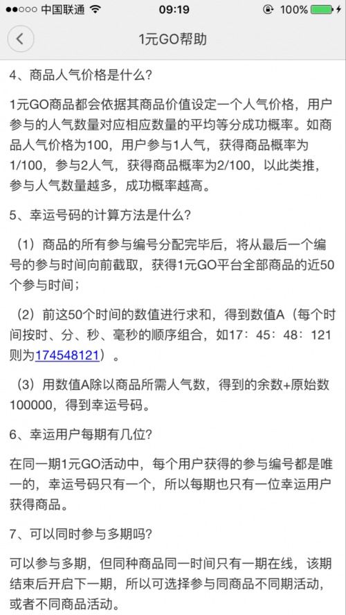 如商品价格为100元,用户参与1元,获得商品概率为1/100,参与2元,获得商品概率为2/100,以此类推,参与金额数量越多,成功概率越高。