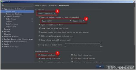 ①修改主题 ②修改全局窗口字体(需要选择中文字体,最好默认不做修改),字号 ③ 窗口动画(电脑性能不怎样可以禁止掉)