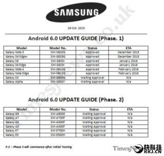 Galaxy Note 5、S6 Edge+:预计开始时间是下个月(2015年12月);