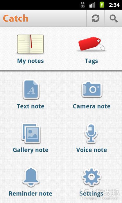 (Catch Notes用户的多数动作可利用应用中的大图标功能实现,这款应用遵从了基本原则,因而运转良好。)