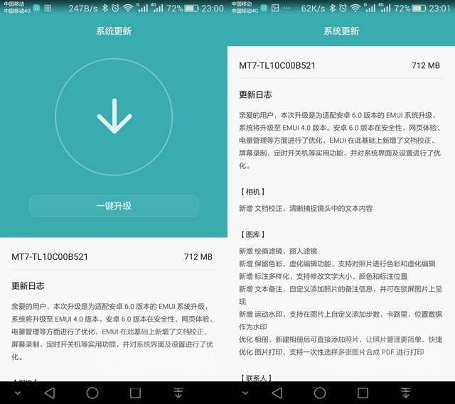 华为Mate 7推送EMUI4.0内测更新 安卓6.0升级!