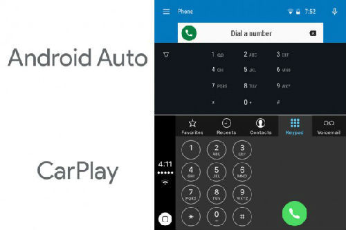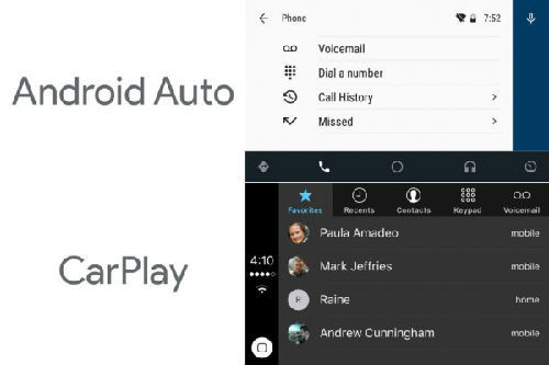 ▲ Android Auto 和 CarPlay的电话平台,功能相似,不过苹果的应用顶部没有标签。