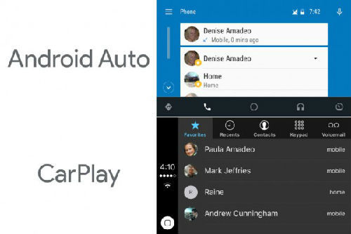 苹果车载系统 CarPlay 和谷歌车载系统 Android Auto 非常相似,它们处理和渲染只能手机上的计算环境,然后将这个界面发布的汽车的显示屏上外部触控显示器。不过这两个系统的界面有很大的区别,CarPlay 采用的是 iOS 用户非常熟悉的网格式应用布局,而 Android Auto 则有一个通知仪表板,采用选项卡式界面。