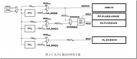 图中ARMCLK是ARM11的CPU时钟,一般设置为532MHz