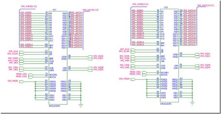 从图中我们可以看到,该核心板有两个DDR级联而得,每个有16位,两个一共32位。一个DDR有15根地址线,寻址空间为2^15=32K,参照K4X1G163