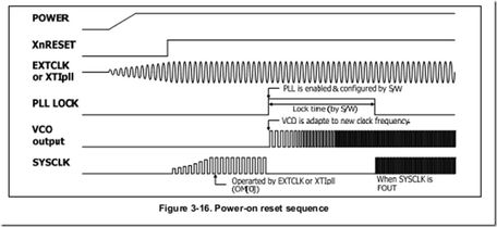 当系统上电,晶振开始起振,不可能一下子从12M就变为532M,需要一段缓冲的时间,这段时间称为LOCKTIME,如下图所示: