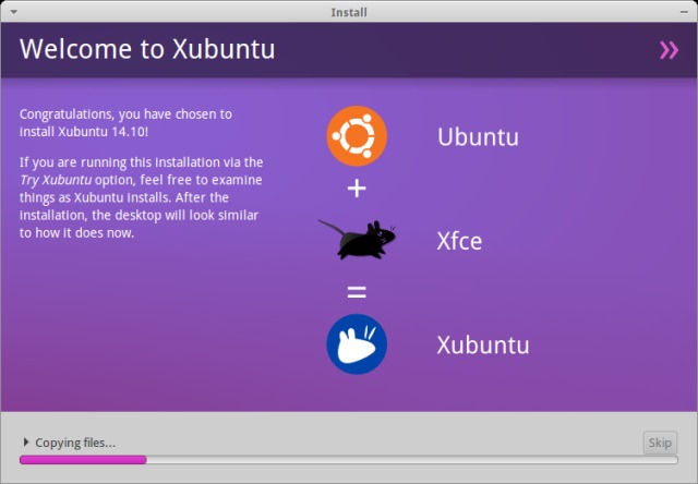 在安装过程中将会拷贝文件到你的电脑,并且安装Xubuntu。在这个过程中,用户看到一个简短的幻灯片。安装完成以后,会弹出提示告诉你是否重新启动,并且开始体验一下新安装的Xubuntu系统。