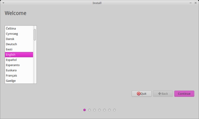第一步,选择你的安装语言。在左边的列表中选择语言,然后单击“Continue”。