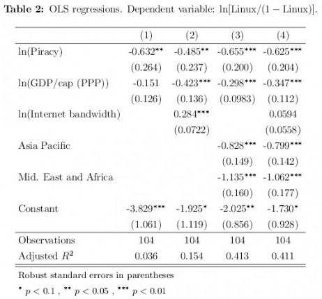 近日,由奥斯陆大学经济学系博士生Arne Rogde Gramstad公布的“Software Piracy and Linux Adoption”研究报告,发现了Linux系统装机量和软件盗版之间的潜在关联。在这份报告中引用了商业软件联盟(BSA)自2012年以来从104 个国家收集的盗版软件信息,根据每个国家的政策和打击力度等原因,Windows系统盗版率在40%至90%之间。科研专家发现了为何盗版Windows系统会阻碍Linux装机量发展(以各种形式)的三个原因。