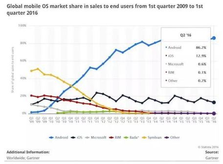 截止到今年二季度,Android市场份额达到86%,每卖出100台的智能手机里有86台Android、12.9 台iPhone……和不到一台Windows Phone。