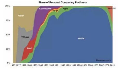 1975 - 2011 个人电脑市场份额。图片来自:BI