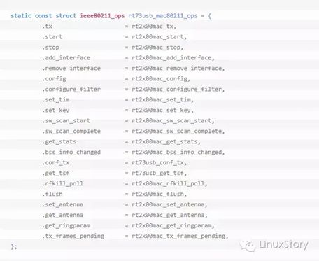 如下代码展示 rtl73usb 无线网卡驱动与 mac80211 的联系。