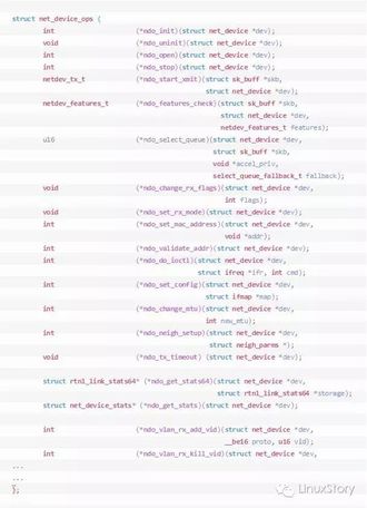 具体接口通过 net_device_ops 结构实现,该结构对应了 net_device 的很多操作。