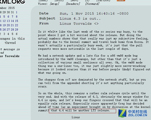 从邮件的红框部分我们可以看到,Linux称下一个版本将是一个LTS长期支持版本。