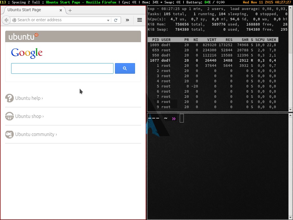 XMonad是用Haskell写的平铺窗口管理器。XMonad提供的各种自动布局和简单易学的快捷键使得它从键盘操作桌面非常自然。而且还有大多数基于活动的终端和面向键盘的工具,真的很不错。