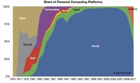 1975 - 2011 个人电脑市场份额。图片来自:BI