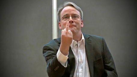 2012 年赫尔辛基举办的一场座谈会上,时年 43 岁的林纳斯提到英伟达显卡驱动给 Linux 带来的麻烦,越说越气,最后对着镜头竖起了中指,说 “So, Nvidia, Fuck You!”。