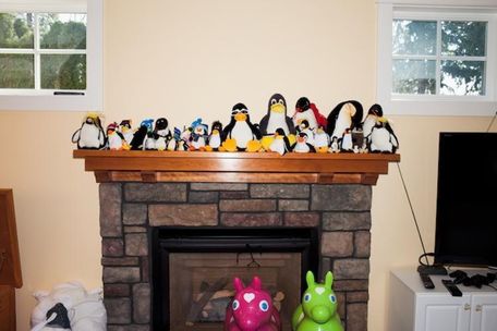 但创造 Linux 的林纳斯,生活跟以前基本一样,开着一辆牌照是 “DAD OF 3” 的车。家里的壁炉上,放满了他最喜欢的企鹅公仔,这也是 Linux 的标志。