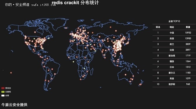 ▲针对全球6379端口的redis服务器做了扫描,结果如上图
