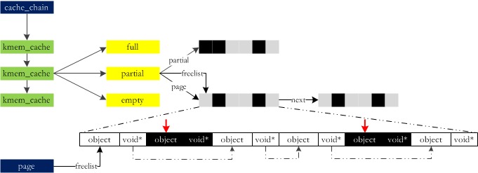 为了解决这些高手们开发了slub:改造page结构来削减slab管理结构的开销、每个CPU都有一个本地活动的slab(kmem_cache_CPU)等。对于小型的嵌入式系统存在一个slab模拟层slob,在这种系统中它更有优势。