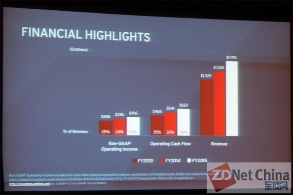 RedHat最近三个财年的表现可谓是稳定增长,2015财年营收17.9亿美元,平均年增长率在15%左右,利润率稳定在23%左右,完全可以说是最成功的OSS厂商