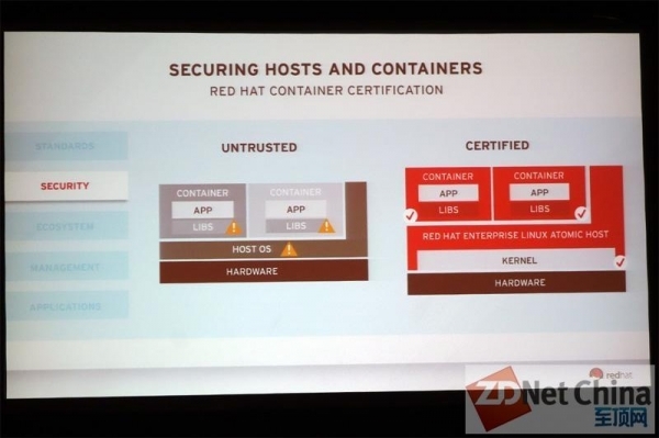 基于对容器的标准化与安全保护,从入门培训到创建容器,再到安全认证与最终的安全注册与分发,RedHat顺势建立起容器的生态系统