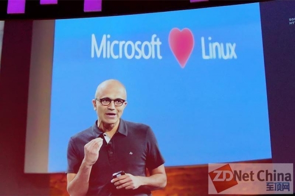 以微软CEO纳德拉(Satya Nadella)与“Love Linux”的组合,作为主题讲演的一页,可以看出RedHat的别有用心