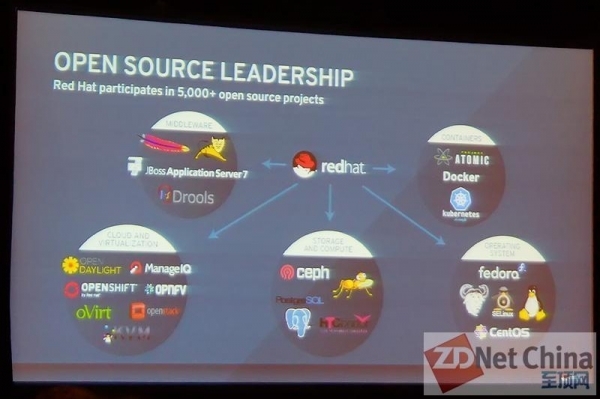 RedHat目前共参与了5000多个开源项目,在主要的5大类别中(中间件、计算/存储、云/虚拟化、容器与操作系统),均有明显的“存在感”
